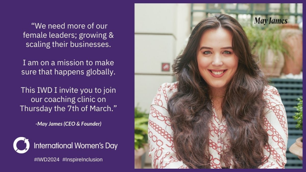 This International Women’s Day (2024), May is opening up her private coaching practice for anyone to join a free 2 hour Coaching Clinic to help support as many female business owners as possible with specific business advice relating to their business.