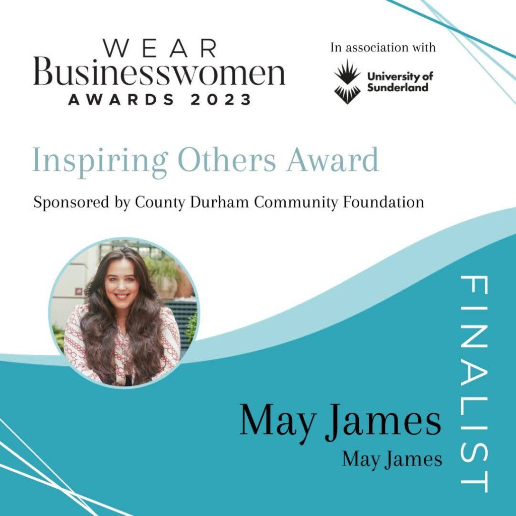 Founder and CEO, May James, has been shortlisted for the Inspiring Others category of the inaugural Wear Businesswomen Awards.